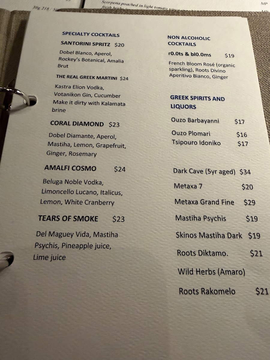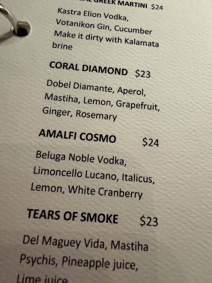 This menu is suitable primarily for lunch and dinner dining experiences, accommodating both casual meals and more structured multi-course dining. It is designed to provide a variety of fresh, Mediterranean-inspired choices with an emphasis on seafood and traditional Greek flavors.