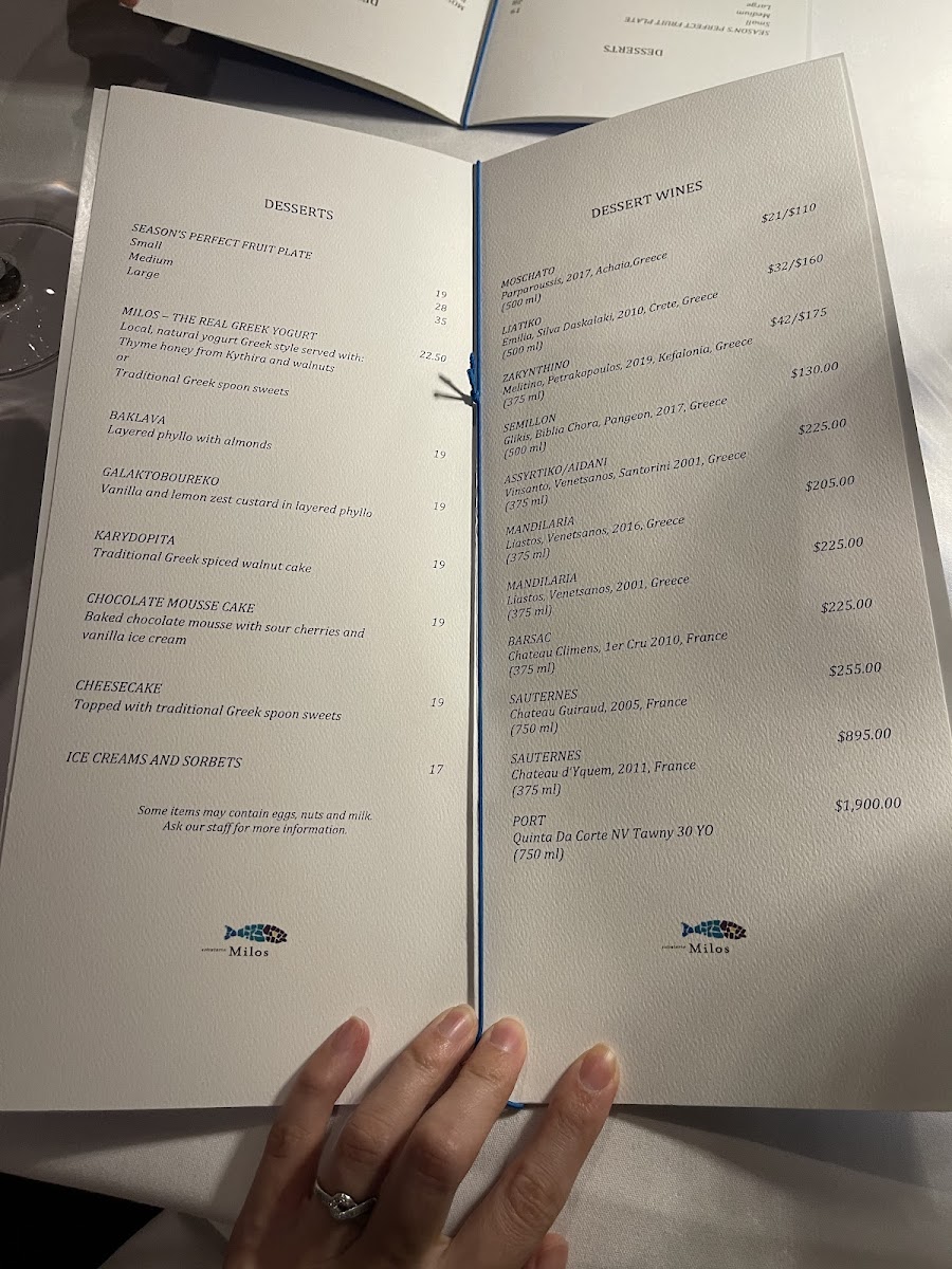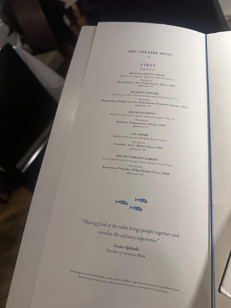 estiatorio Milos Midtown Menu